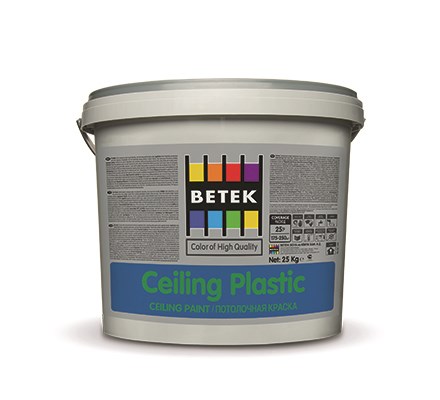 Acrylic copolymer emulsion-based, decorative, matt white ceiling paint for interior surfaces