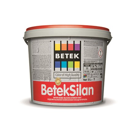 Acrylic copolymer emulsion-based, silicone, matte-looking, exterior top-coat paint.